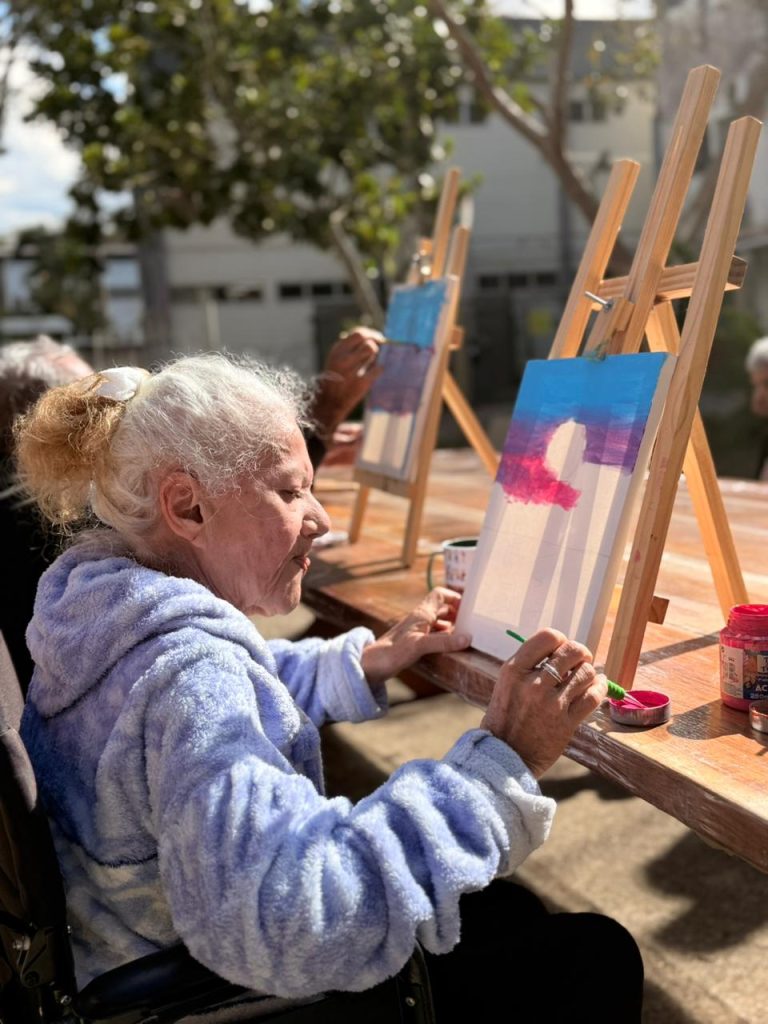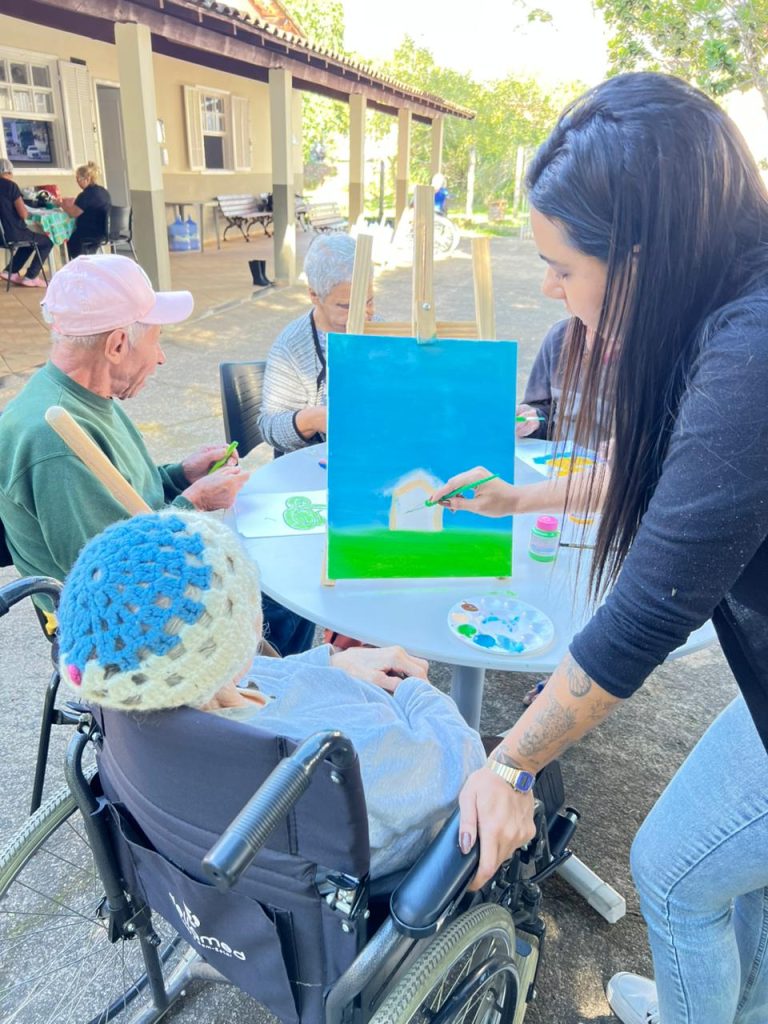 O Conexão de Gerações, desenvolvido em parceria com a Escola Municipal Raul Machado, tem sido um dos momentos mais especiais. Alunos do 5º ao 9º ano visitam a Casa Lar para pintar ao lado dos idosos, trocar experiências e compartilhar risadas. “Os estudantes demonstram alegria de estar presentes. Muitos voltam para casa emocionados após a vivência, e os idosos amam demais esse momento”, conta a diretora da unidade, Márcia Cruz.