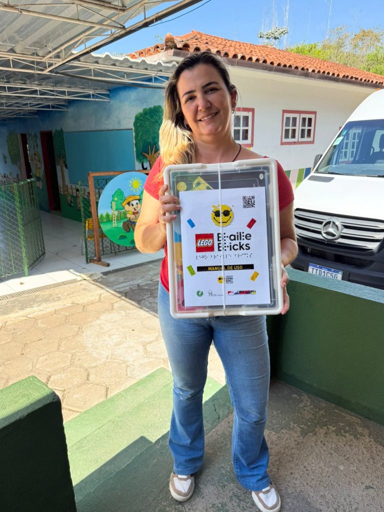 Ela destacou ainda que o material é exclusivo. “Nosso município foi contemplado gratuitamente por ter solicitado o projeto. O Lego Braille Bricks não é um simples brinquedo. Ele tem intencionalidade pedagógica e exige capacitação para que os profissionais explorem todo o seu potencial com diferentes alunos”, explicou.